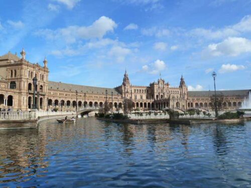 - Visita del Alcázar, de la catedral y la Giralda (según disponibilidad), de la Torre del Oro, de la plaza de España