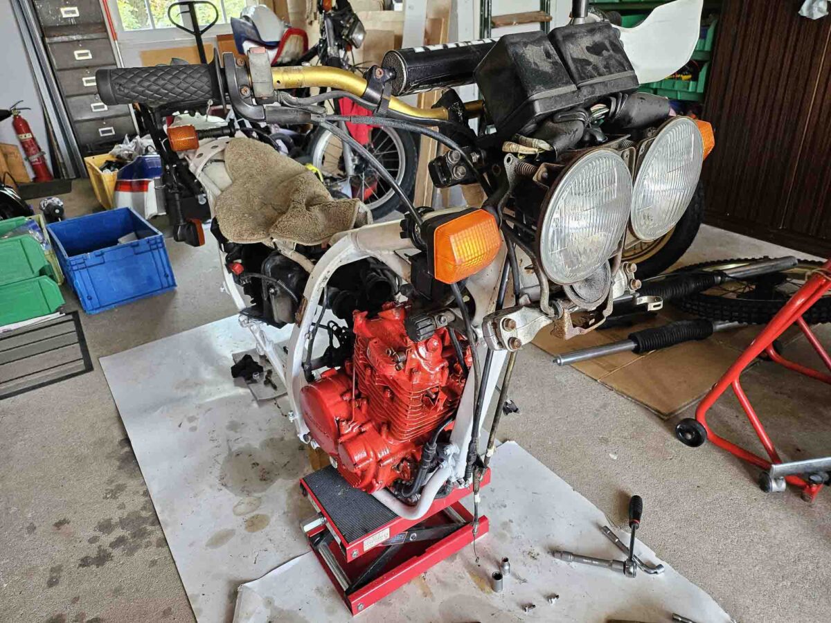 La 600 XLR PD03 París-Dakar no arranca y deberá ser completamente restaurada. Afortunadamente, el lote incluía un segundo motor así como numerosas piezas de repuesto. Su resurrección, prevista para 2026, será objeto de un artículo dedicado.